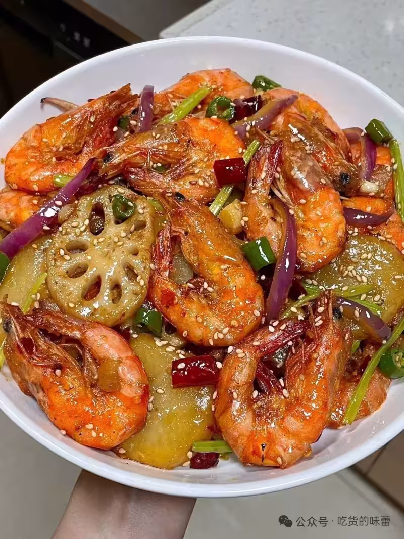 廚房小白也可以做的詳細教程: 食材:大蝦,蓮藕,土豆,姜蒜,洋蔥,青辣椒,芹菜,干辣椒,火鍋底料,生抽,蚝油,砂糖,鹽,澱粉