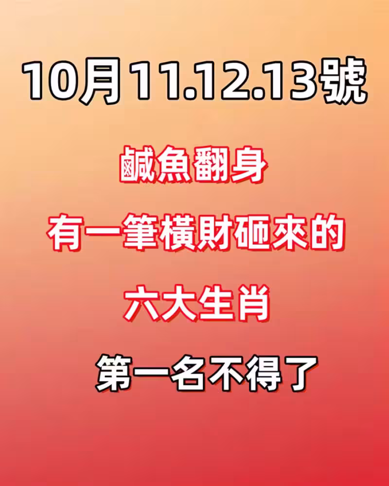 10月11.12.13號鹹魚翻身,有一筆橫財砸來的六大生肖!
