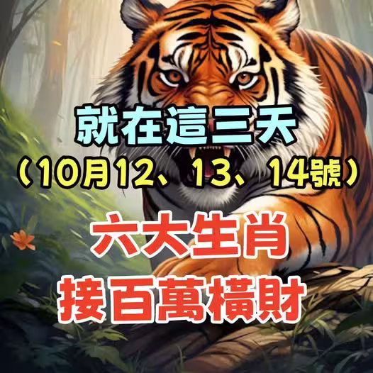 就在這三天(10月12、13、14號)六大生肖接百萬橫財