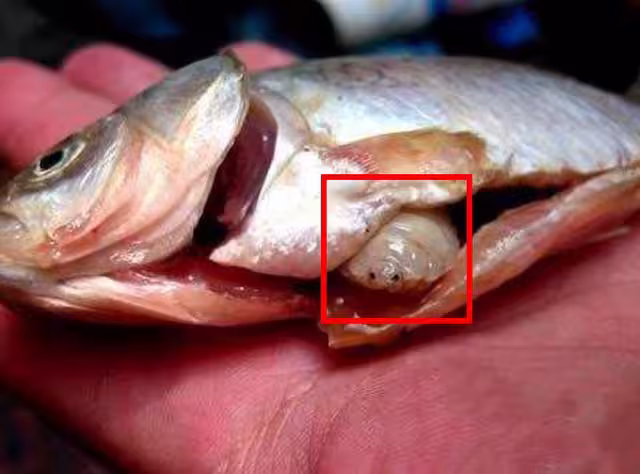 男子買了一條魚回到家中就準備著將魚解刨之後拿來煮,沒想到手才趕伸進魚肚子裡面就被咬了一下,男子一看魚肚子裡面竟爬出來了一隻白色的小東西,這種小東西看起來好像一隻甲蟲一樣,但不同的就是這隻小東西全身都是白色的,而且前面還有一雙黑黑的眼睛,看起來非常的恐怖。