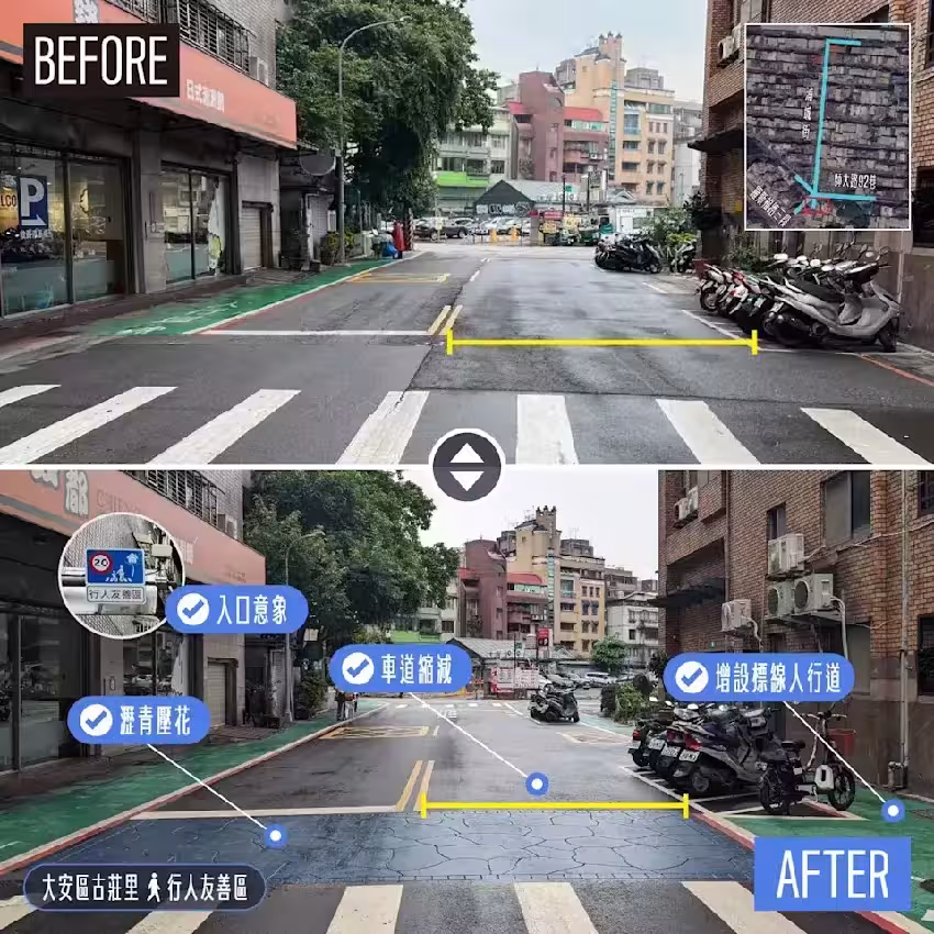 根據規定,行人友善區車輛限速不得超過30公里、行人優先區更不得超過20公里。