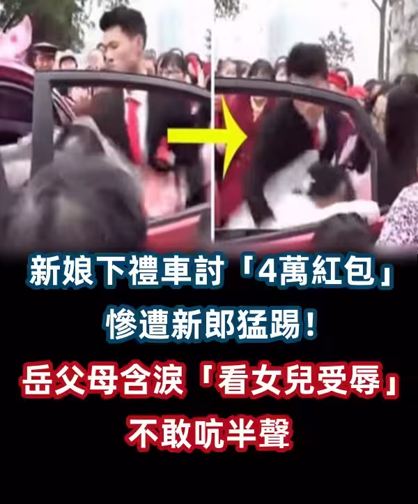 新娘下禮車討「4萬紅包」慘遭新郎猛踢!岳父母含淚「看著女兒受辱」不敢吭半聲...