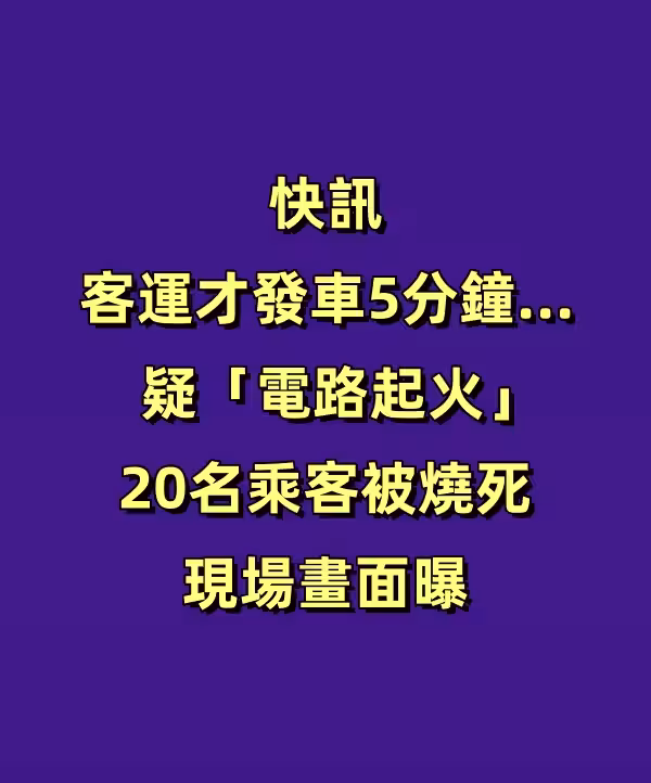 快訊/客運才發車5分鐘...疑「電路起火」20名乘客被燒死 現場畫面曝…