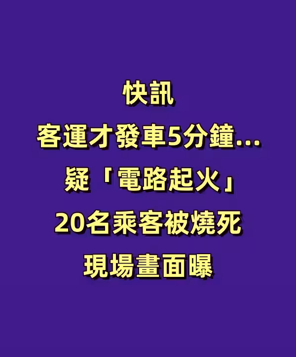 快訊/客運才發車5分鐘...疑「電路起火」20名乘客被燒死 現場畫面曝.