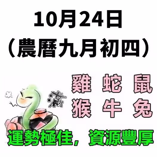 小運播報:2025年10月24日,星期五,農曆九月初四。