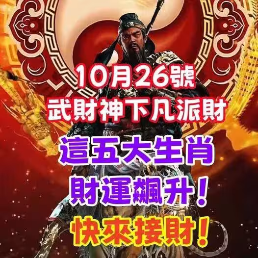 10月26號,武財神下凡派財,這五大生肖財運飆升!快來接財!