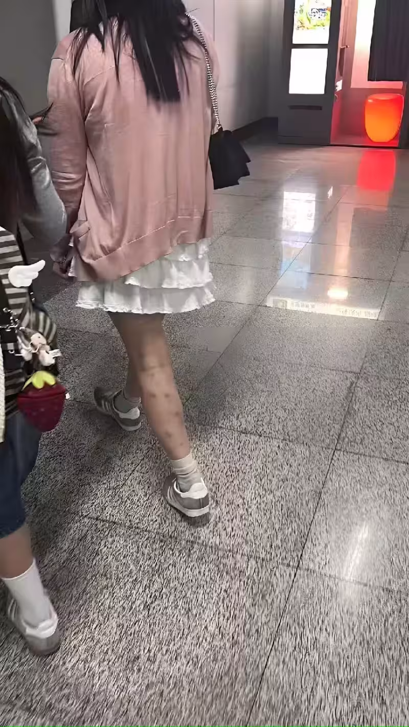 正當他想上前搭訕時,卻發現對方小腿上散布著7、8個瓶蓋大小的斑塊,邊緣隆起,像什麼咬過一樣。