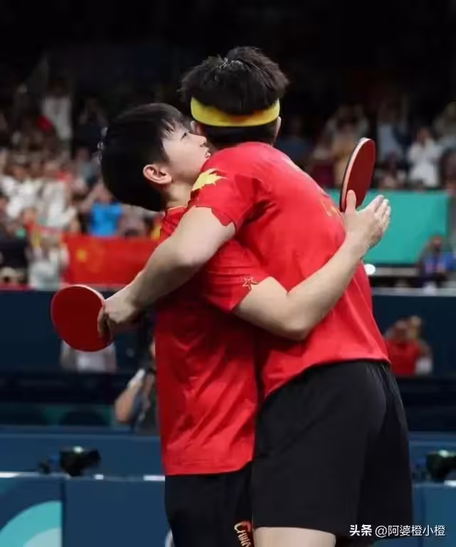 照片里,孫穎莎和王楚欽穿著帶有動物造型的連體毛絨睡衣,站在熟悉的領獎台或賽場邊。