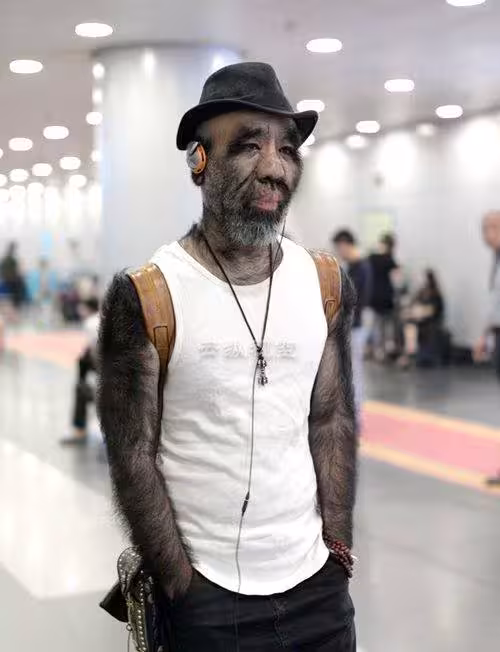 「中國第一毛孩」于震寰的出生曾震驚了世界,他全身的毛髮覆蓋率達96%以上,被金氏記錄評為「世界毛髮覆蓋最多的人」。
