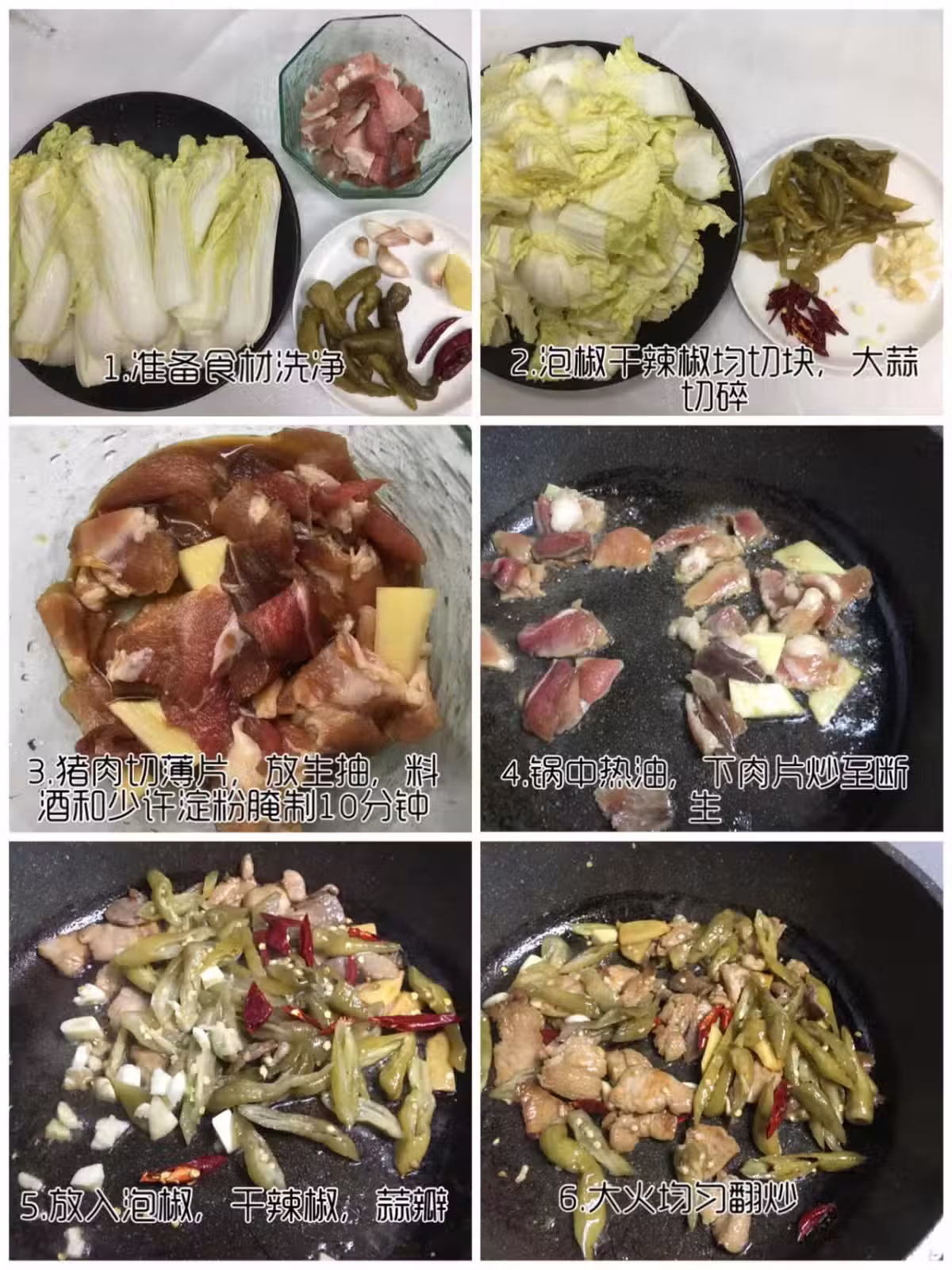 4️⃣放入白菜,大火均勻翻炒,至菜梗微微變軟時加入適量鹽,兩勺生抽,三勺香醋,一小勺蚝油,繼續大火翻炒,到湯汁吸收到一半就可以出鍋啦😋