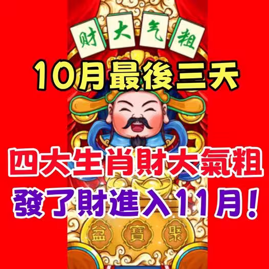 10月最後三天,四大生肖財大氣粗,發了財進入11月!
