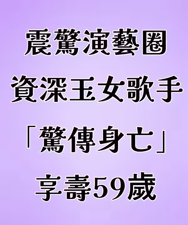 快訊/資深玉女歌手「驚傳身亡」死因曝光!享壽59歲