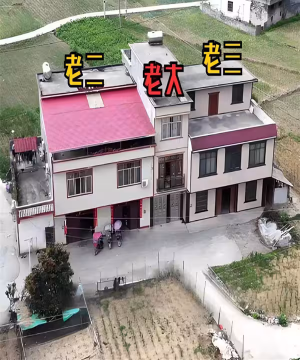 三棟房子緊挨在一起,大哥的房子在中間,老二、老三的房子在兩邊。