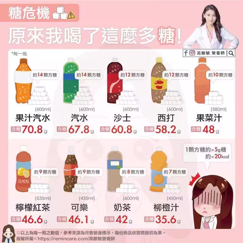 台灣飲料店跟超商密度都是全世界第一名,根據102-105年「國民營養健康狀況變遷調查」,有高達83.6%的19-44歲成人、93.9%的國中生及88.9%的高中學生每周至少喝1次含糖飲料。