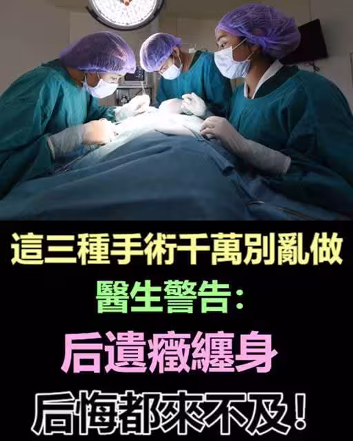 你是否曾聽到身邊的朋友或親人因為一些小病小痛而決定去做手術?在這個快節奏的社會中,似乎人們越來越傾向於通過手術來解決健康問題。然而,許多醫生警告:並非所有手術都是明智之選,特別是以下三種手術,可能會讓你後悔不已。