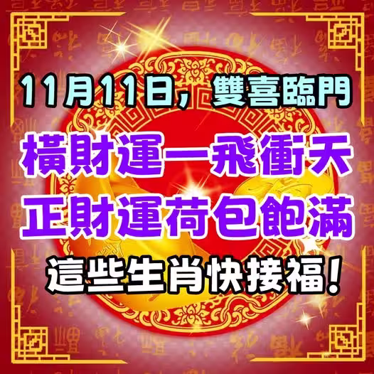 11月11日,雙喜臨門,橫財運一飛沖天,正財運荷包飽滿,這些生肖快接福!
