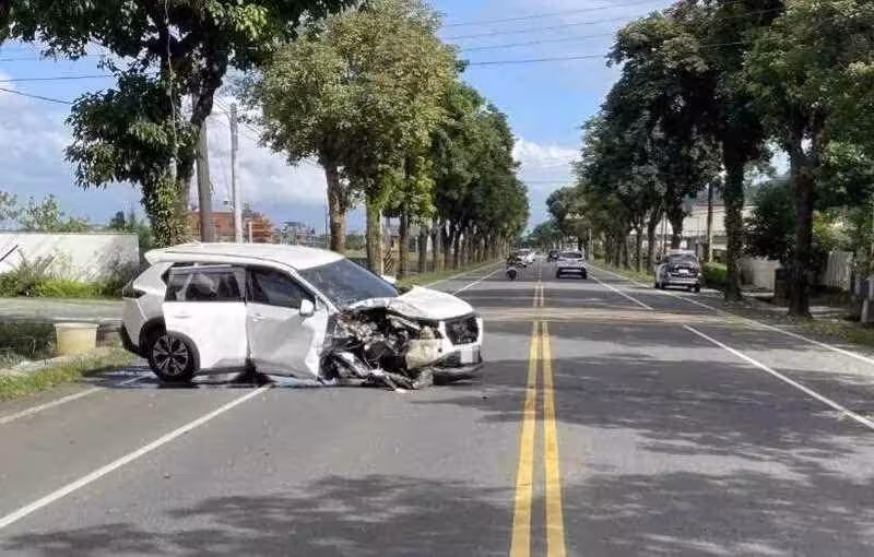 據三星分局的調查,事發地點在三星路三段上,今天下午1點8分獲報後旋即會同救護人員、消防隊趕往現場,抵達後發現該輛休旅車的車頭右前方已經撞到不見,零件四散路面,安全氣囊爆開,路樹更是被撞出明顯凹痕。