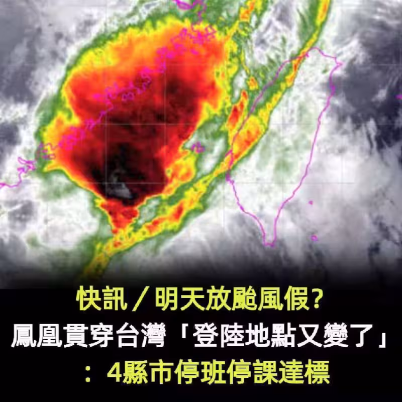 快訊/明天放颱風假?鳳凰貫穿台灣「登陸地點又變了」:4縣市停班停課達標!