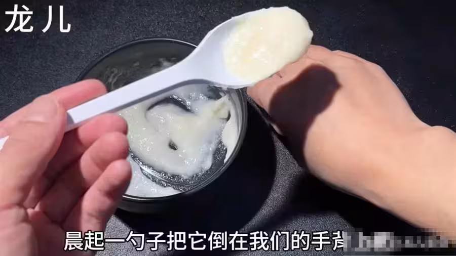 而作為家庭主婦就是勤儉持家,所以想讓我花高價錢去買一些保養品,我是萬萬捨不得的,所以我就會隔三差五像這樣用白醋還有凡士林以及蜂蜜麵粉調和出來之後塗抹在我的手上,每一個地方都要塗抹到,像我們的手指縫、手指尖、指腹上面以及手掌上都要塗到,越粗糙的地方我們就越要多塗一點,塗好之後,用手反覆的搓一搓。