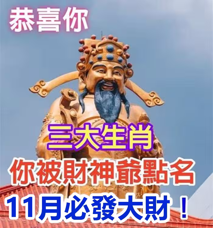 左手財神,右手貴人!這三大生肖被財神爺點名,11月必發大財!