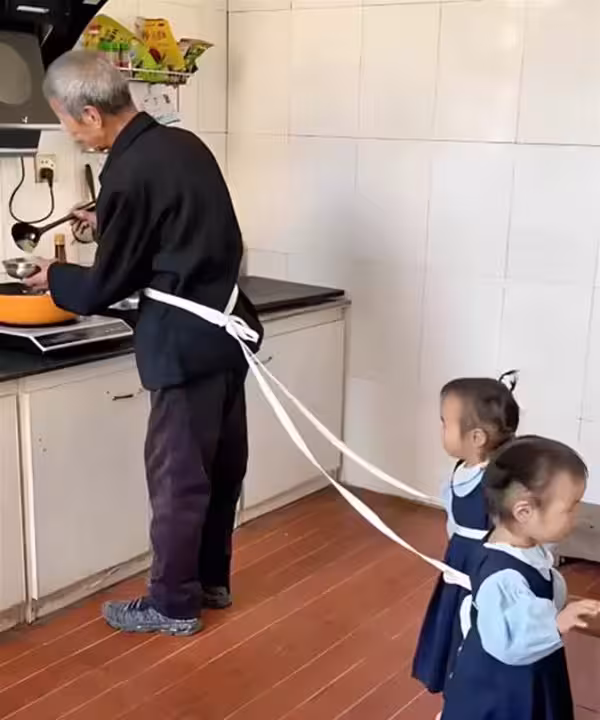 下班回家,公公「竟用繩子綁著兩個孫女」頓時火冒三丈,網友指出「一細節」瞬間後悔不已