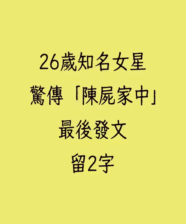 26歲知名女星驚傳「陳屍家中」最後發文留2個字