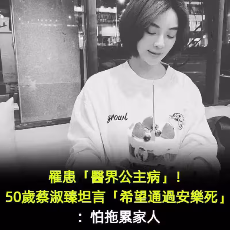 認罹「醫界公主病」消失1年!知名女星苦盼「台灣通過安樂死」病況曝光,「坦承怕拖累家人」喊話老後堅持不賴活