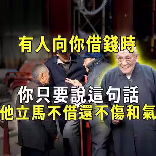 有人向你借錢時 第一句話不要問借多少!而是要這樣回答 他不但立馬不借 還不傷和氣~