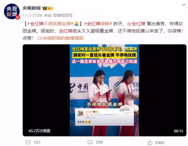 央視給足全紅嬋排面!罕見6分鐘報道,最後安慰她的那段話封神了