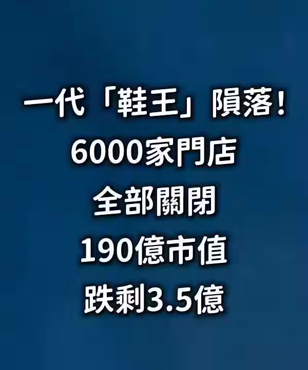 一代「鞋王」隕落:6000家門店全部關閉...190億市值跌剩3.5億!