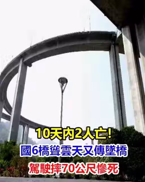 10天內2人亡!國6橋聳雲天又傳墜橋,駕駛摔70米慘死