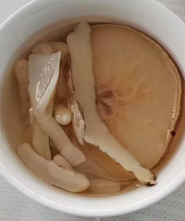 干玉竹10克、麥冬10克、干百合15克、茯苓10克、雪梨乾3片(鮮雪梨也可)