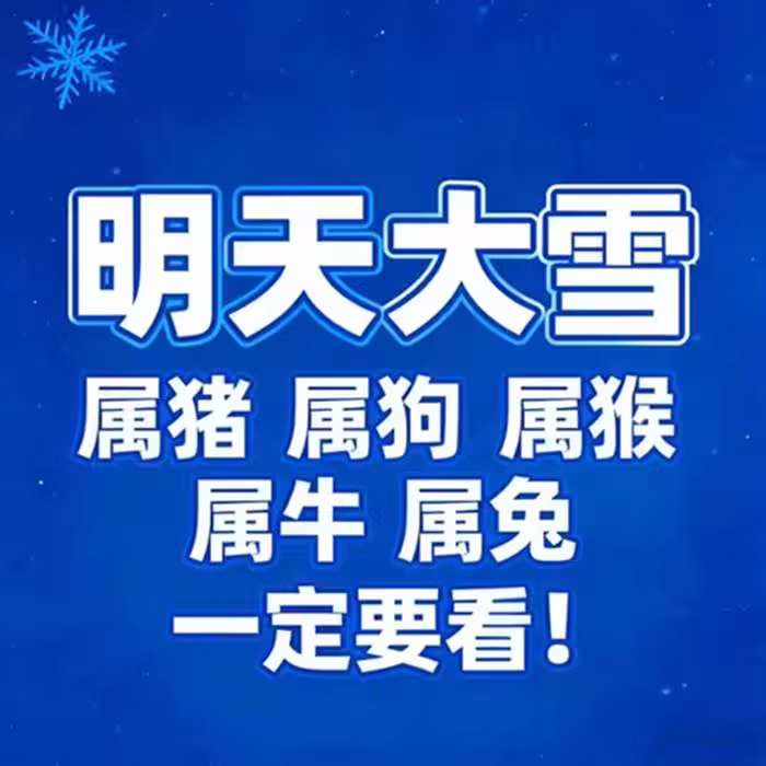明天大雪 「屬豬 屬狗 屬猴 屬牛 屬兔」 一定要看