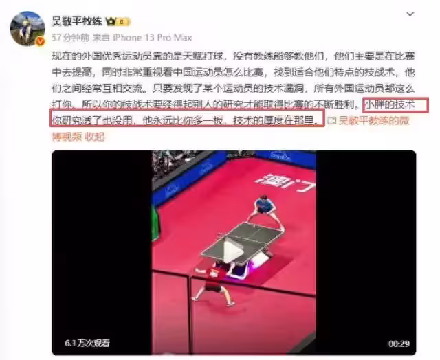 事實證明,被列為「傳奇人物」的樊振東,吳敬平對其評價半點沒錯