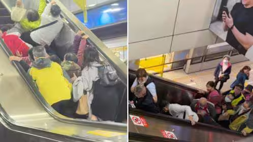 北捷亞東醫院站手扶梯上午發生跌倒意外,多起長者摔成一團,北捷說明,上午10時許,亞東醫院站一名女性旅客,於月台往大廳方向電扶梯,疑似未踩穩踏階,以致重心不穩跌倒,影響後方7名旅客亦跟著重心不穩傾倒,現場熱心旅客立即按壓緊急停機按鈕,站長亦立刻到現場處理,經初步檢視其中一名旅客腿部受傷,站長立即請行控呼叫救護車,將旅客送往亞東醫院。
