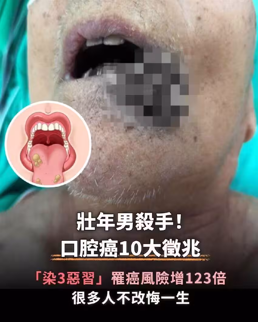 壯年男巨大殺手!口腔癌10大徵兆「染3惡習」罹癌風險增123倍,很多人不改悔一生