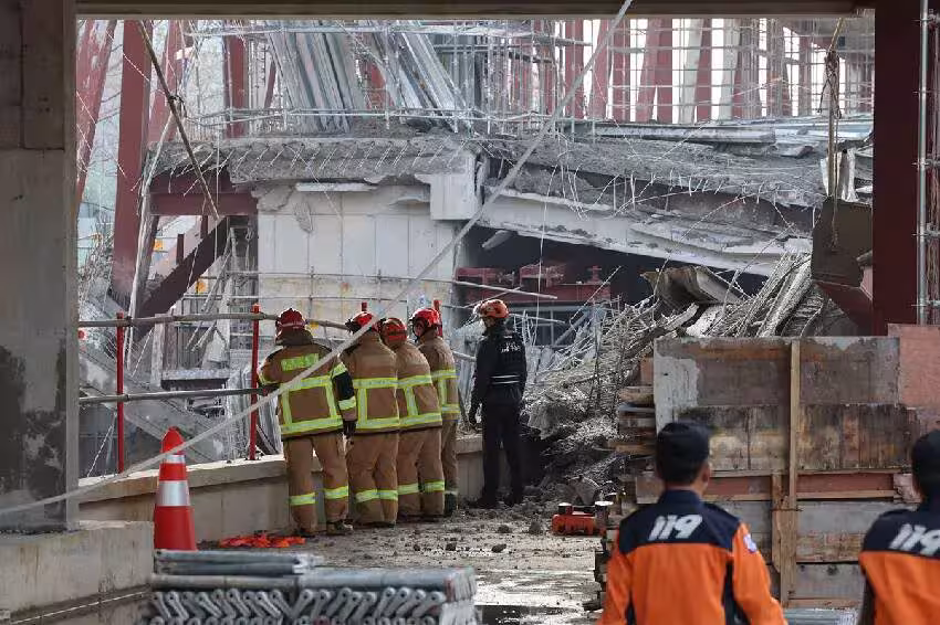 ▲光州代表圖書館鋼鐵結構崩塌,恐還有再度坍塌風險。
