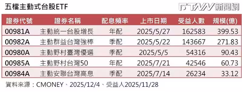 進一步統計4日逆勢上揚、近一周也同時打敗大盤的原型台股ETF共有6檔,其中有5檔持有高比重的金融股,以近一周績效來看,群益台灣精選高息(00919)上漲1.35%居冠,探究其上漲原因,發現00919持有4成的金融股,金融三雄為其前三大持股,持股比重分別為國泰金14.79%、中信金13.65%、富邦金12.44%,合計近40.88%,在今年第三季也都繳出亮眼的獲利成果,據了解,00919甫公布第11次配息金額0.54元維持前一季水準,預估年化配息率10.07%,為連續11季維持10% 以上,除息日為12月 16 日,參與除息最後買進日為12月15日。