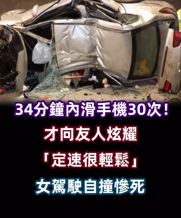 34分鐘內滑手機30次!!! 才向友人炫耀「定速很輕鬆」女駕駛自撞慘死
