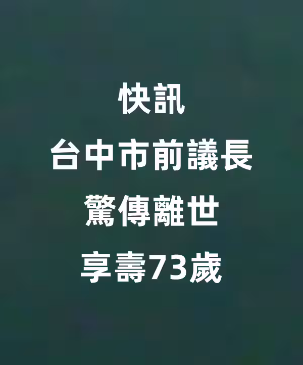 快訊/ 台中市前議長驚傳離世 享壽73歲!