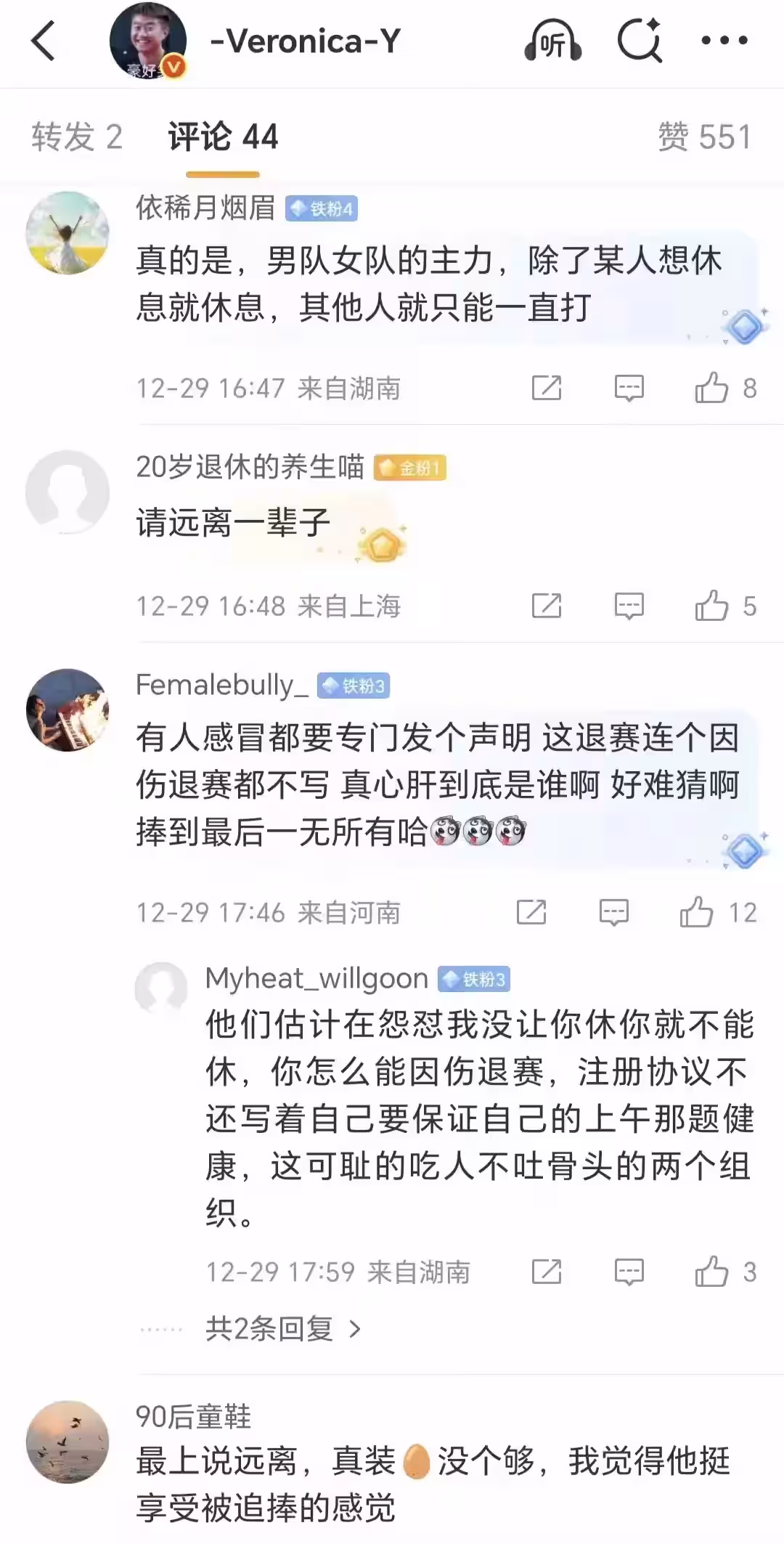 最讓人擔心的是,這種「非黑即白」的飯圈思維正在侵蝕體育圈。喜歡一個運動員,就要把和他相關的人都當成敵人?運動員退個賽,還要被審查「理由夠不夠充分」?別忘了,莎頭組合是要一起備戰巴黎奧運混雙金牌的搭檔。現在粉絲互相攻擊,大V帶節奏引戰,最終傷害的是運動員之間的關係和狀態。