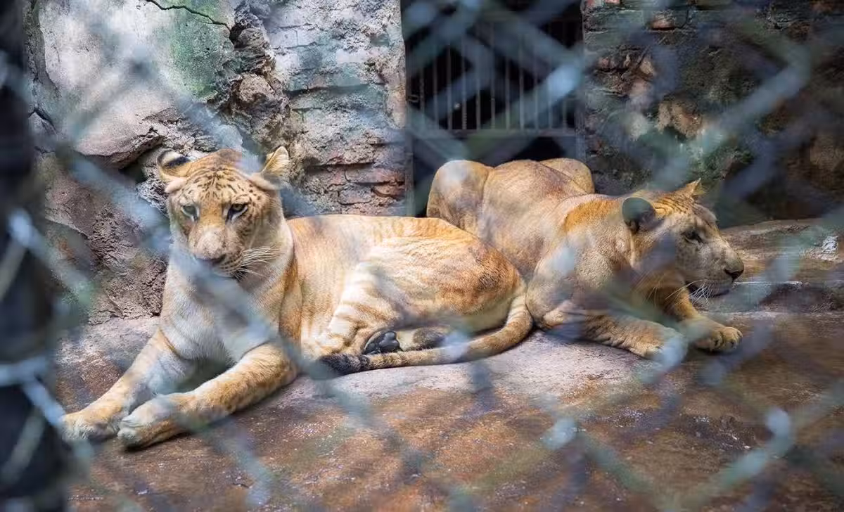 相對獅子區單一的非洲獅,虎區的品種好像更多一些,有東北虎、孟加拉虎等,另外還有獅虎獸,就是獅子與老虎所生的仔。而且每個籠子裡就關兩隻,按照我的推測,這麼多品種的老虎關一塊,估計三天兩頭會打架。