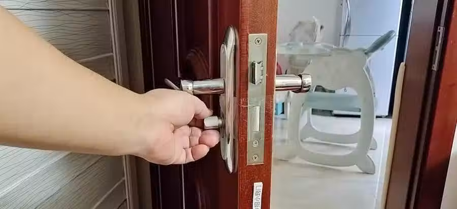 我們把房門鎖芯的位置粘貼好了之後,現在我們來試一下,這樣即使小孩想反鎖的時候,擰也擰不動,裡面的鎖芯也就出不來,不能反鎖了。如果家裡的小孩長大了,那麼我們也可以在自己的房間裡面放上備用鑰匙,防止小孩鎖門,發生一些危險的事情,也是非常簡單的一個方法。