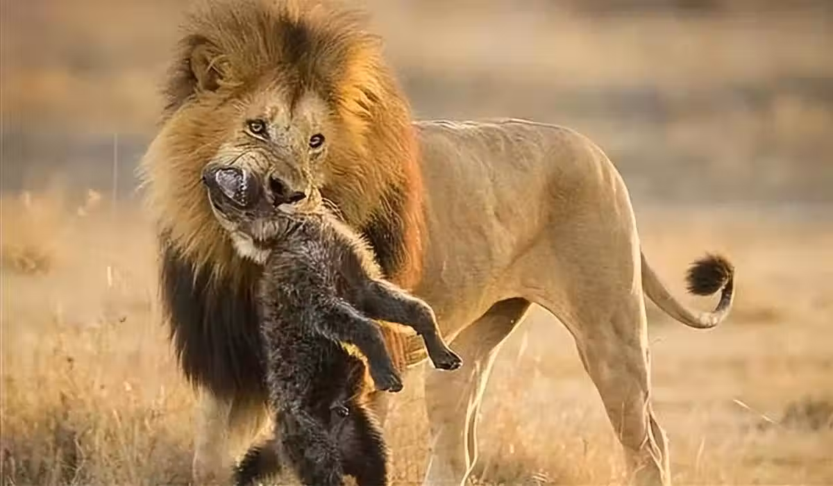 獅子殺死小鬣狗。獅子不喜歡吃鬣狗肉,但喜歡殺死鬣狗,因為鬣狗經常殺死小獅子、老獅子。