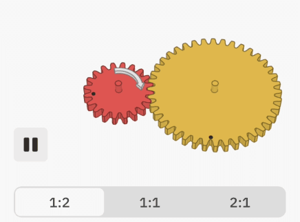 這些齒輪旨在相互配合,因此齒數比等於齒輪半徑比。當主動齒輪比從動齒輪的齒數多時,從動齒輪比主動齒輪轉速更快。我們可以通過這種機制來使手錶的秒針在發條盒一次旋轉時旋轉多次。