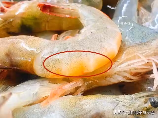有一些蝦,因為在運輸的過程中受熱,導致蝦殼發紅,而這種發紅的蝦也是不能買的,因為這種蝦肉已經變老了,煮熟後吃著一點都不Q彈。大家挑選蝦時,一定要買蝦殼非常乾淨,沒有色差的蝦。