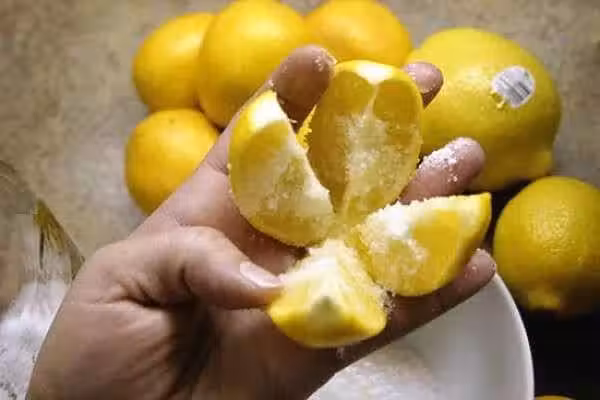 把「檸檬十字體切開」再灑上一點鹽,放在廚房中,隔天你就會發現驚喜的效果!