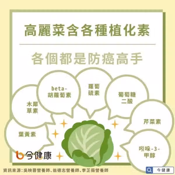 且高麗菜也富含異硫氰酸苯乙脂,也能抑制大腸癌的細胞分裂和增長。種種營養都對防範大腸癌相當有利,對於想預防大腸癌或有大腸癌家族史的民眾來說,是個非常好的選擇。