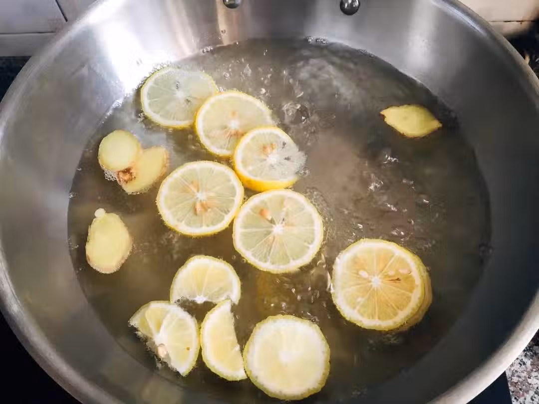 3、清洗白色衣服,切一片檸檬丟進清水中煮開,然後用檸檬水來浸泡白色的衣服,15分鐘後取出清洗。