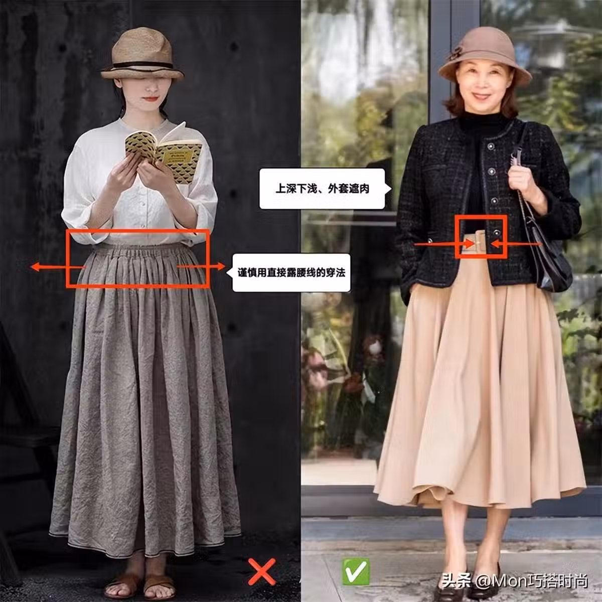 *01.外套+高腰內搭比直接露腰線更顯瘦